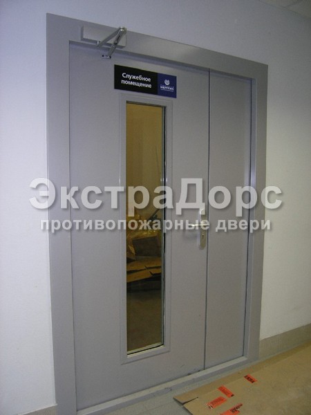 Двухстворчатая противопожарная дверь с прямоугольным стеклом в Реутове