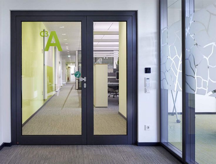 Противопожарная алюминиевая дверь со стеклом для офиса в Реутове